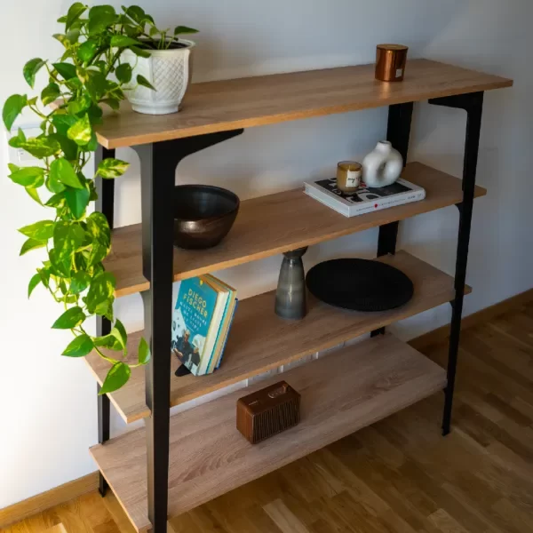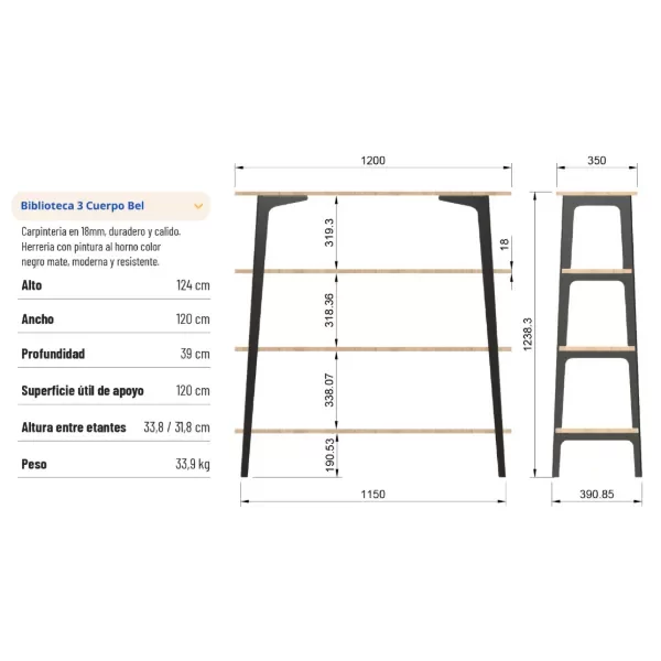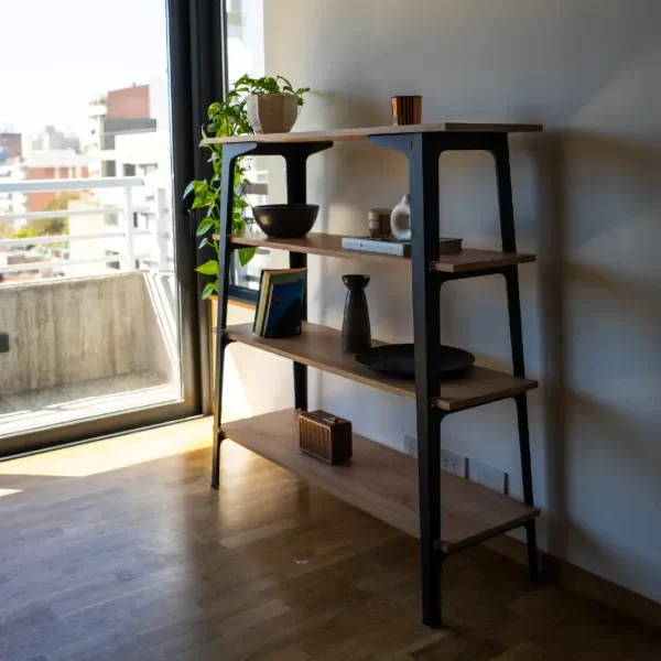 La solución perfecta para exhibir y organizar sin ocupar de más. La Biblioteca 3 Cuerpo Bel ofrece cuatro estantes amplios para libros, deco o almacenamiento, combinando estructura metálica y melamina de calidad para un look moderno y duradero. Ideal para living, oficina o dormitorio.