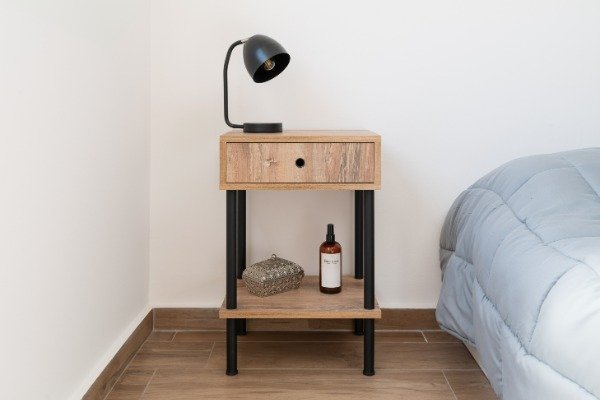 Agrega carácter a tu dormitorio con esta mesa de luz de estilo industrial, diseñada para ofrecer funcionalidad y un look moderno y urbano. Su estructura robusta y diseño minimalista la hacen perfecta para acompañar todo tipo de camas.