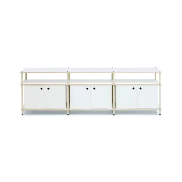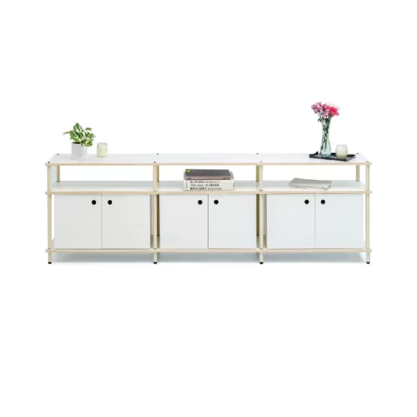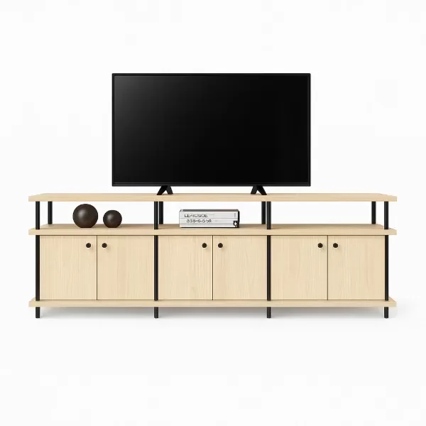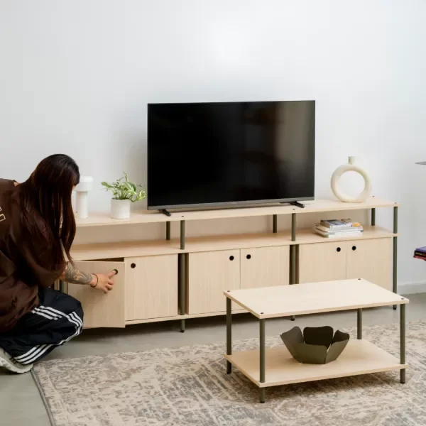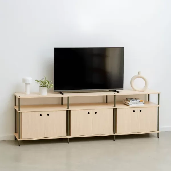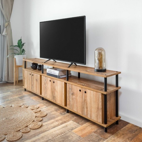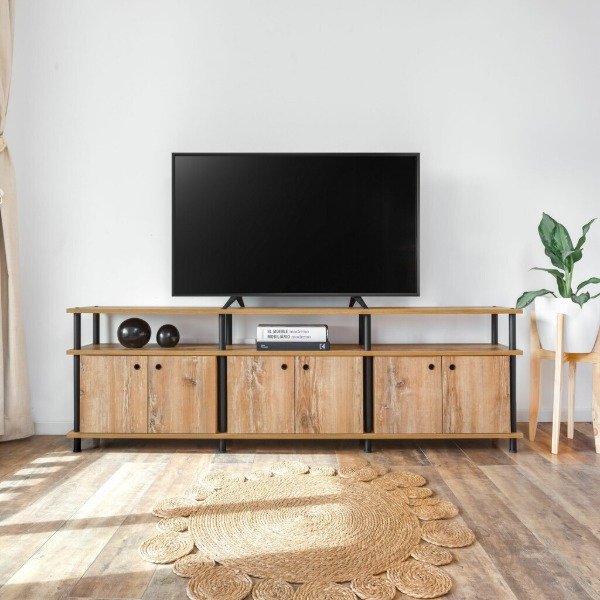 ¡El Rack de TV que necesitás para tu living! Con tres niveles de apoyo y tres módulos adicionales con puertas, este mueble combina funcionalidad y estilo industrial. Ideal para organizar tu televisor y tus objetos decorativos.